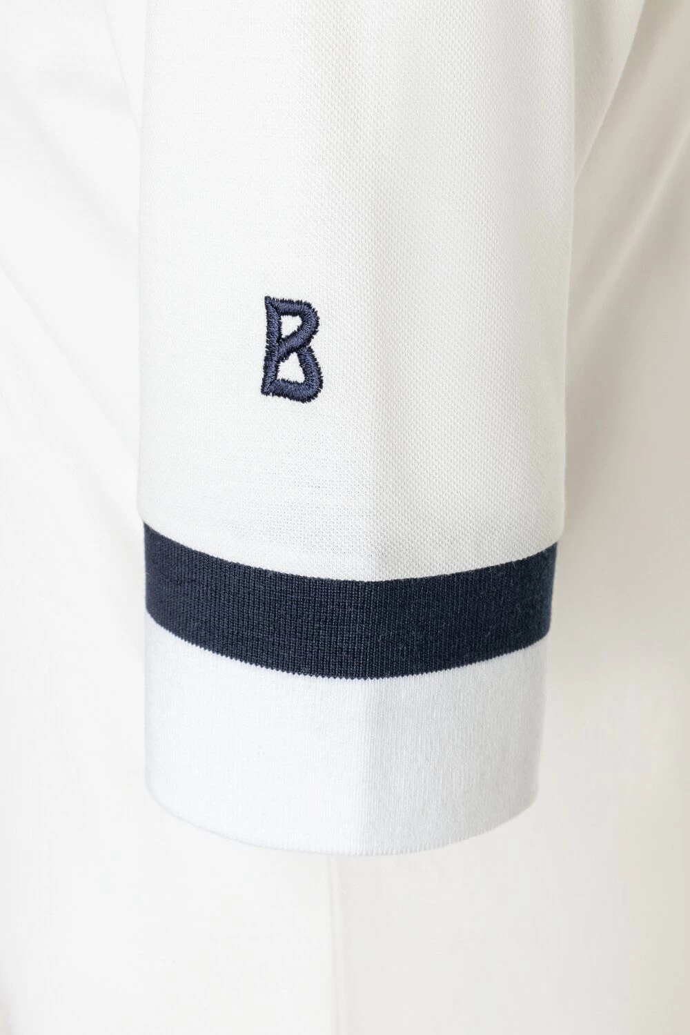 - Verkorte mouwen met brede geribbelde manchetten en contrasterende strepen, met B-logo stiksel aan de linkerkant