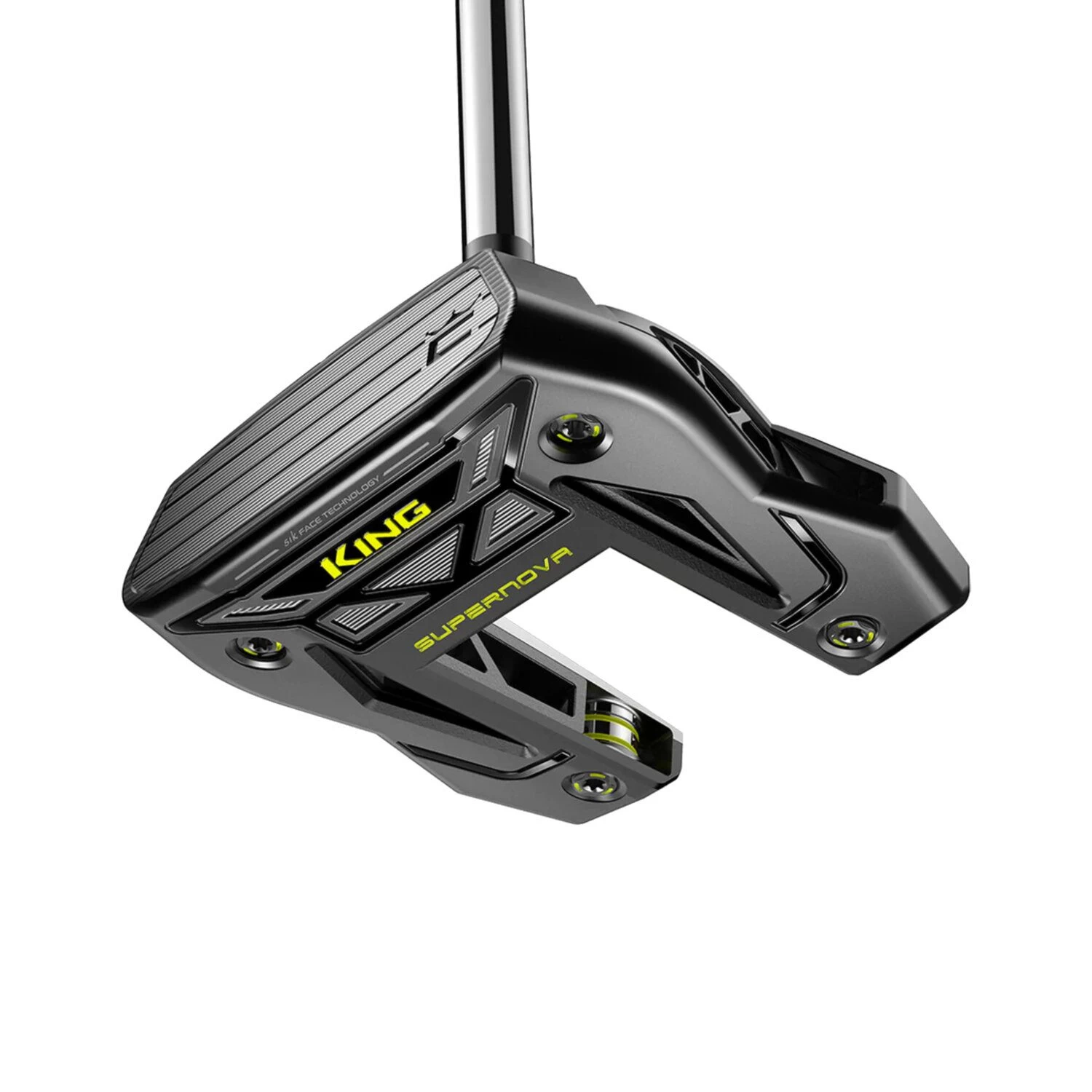 Met de KING Supernova putter krijg je een oversized fang-vormige putter die gebruik maakt van een multi-materiaal constructie. Het putterhoofd bevat een 3D-geprint nylon inzetstuk, aluminium en wolfraam gewichten, en SIK Face Technology, wat resulteert in de perfecte balans tussen stabiliteit en nauwkeurigheid bij het rollen. Kortom, de KING Supernova putter biedt een optimale combinatie van technologie en ontwerp voor een betere prestatie bij elke putt.